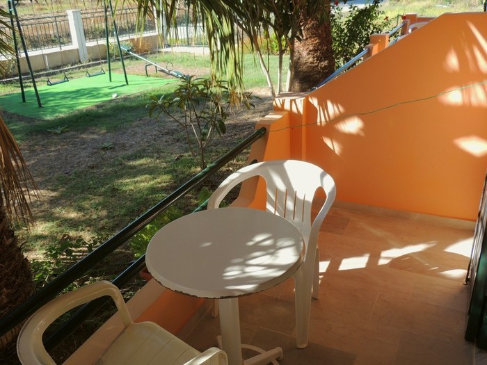 At the back of the building there is a large parking space and in the front a wonderful lawn covered by trees ideal to chill. There are also a couple of swings and a see-saw for our young guests