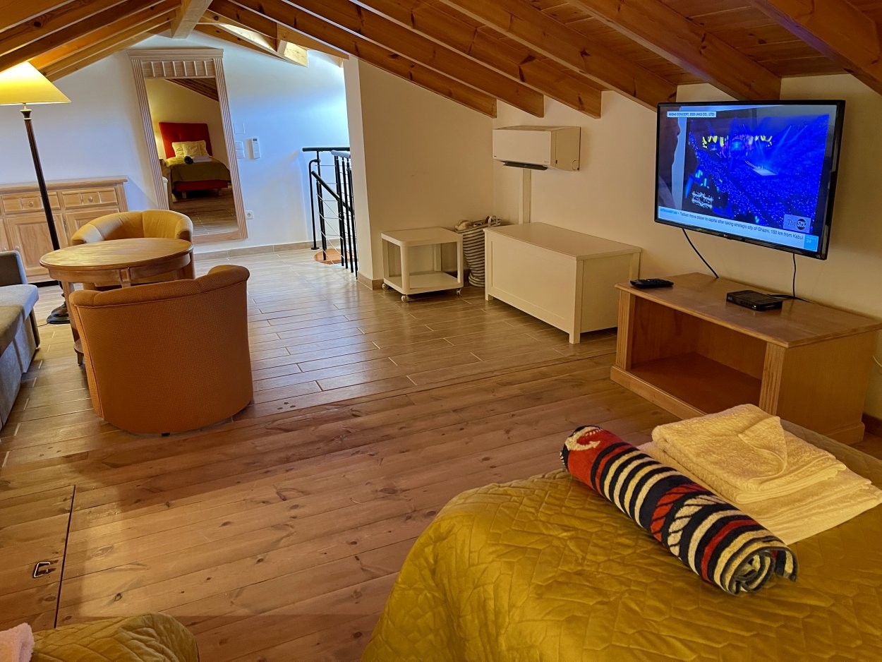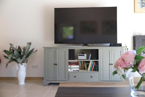 The villa is designed for relaxation in PROVENCE style. It is composed of a large open-plan space with a lavish living-room that includes a bio-fireplace to set the perfect atmosphere, a bedroom with the sea view, an open attic room over the living room, an open kitchen with a dining area and a comfortable bathroom with a walk-in shower.