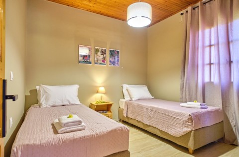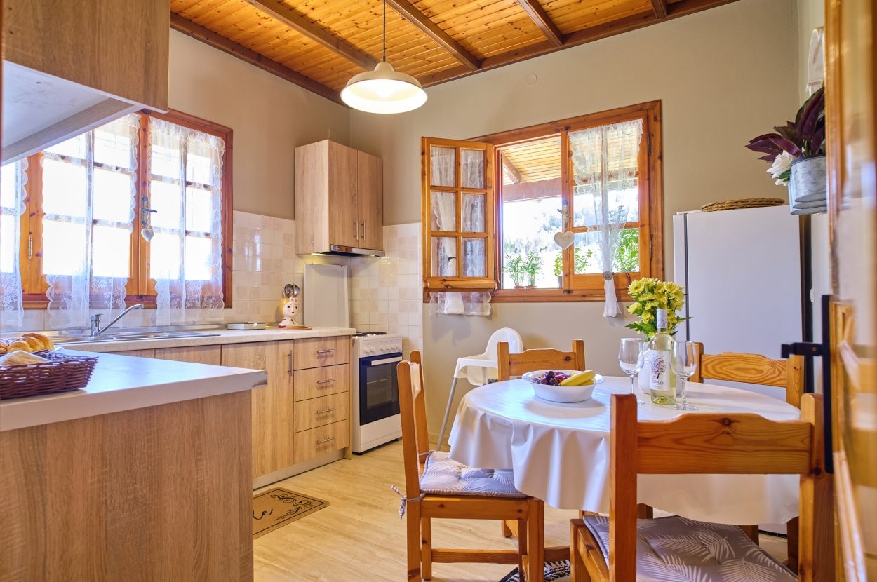 Guests have at their disposal free WiFi and private parking on site. The Kodelo summer house includes a bedroom with a super double bed and a room with two single beds that can be converted into a super double bed also, the bathroom has a shower and a hair dryer is provided, a spacious living room, as well as a fully equipped kitchen.The building is fenced and at the garden there are swings for the children.