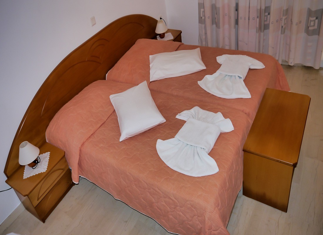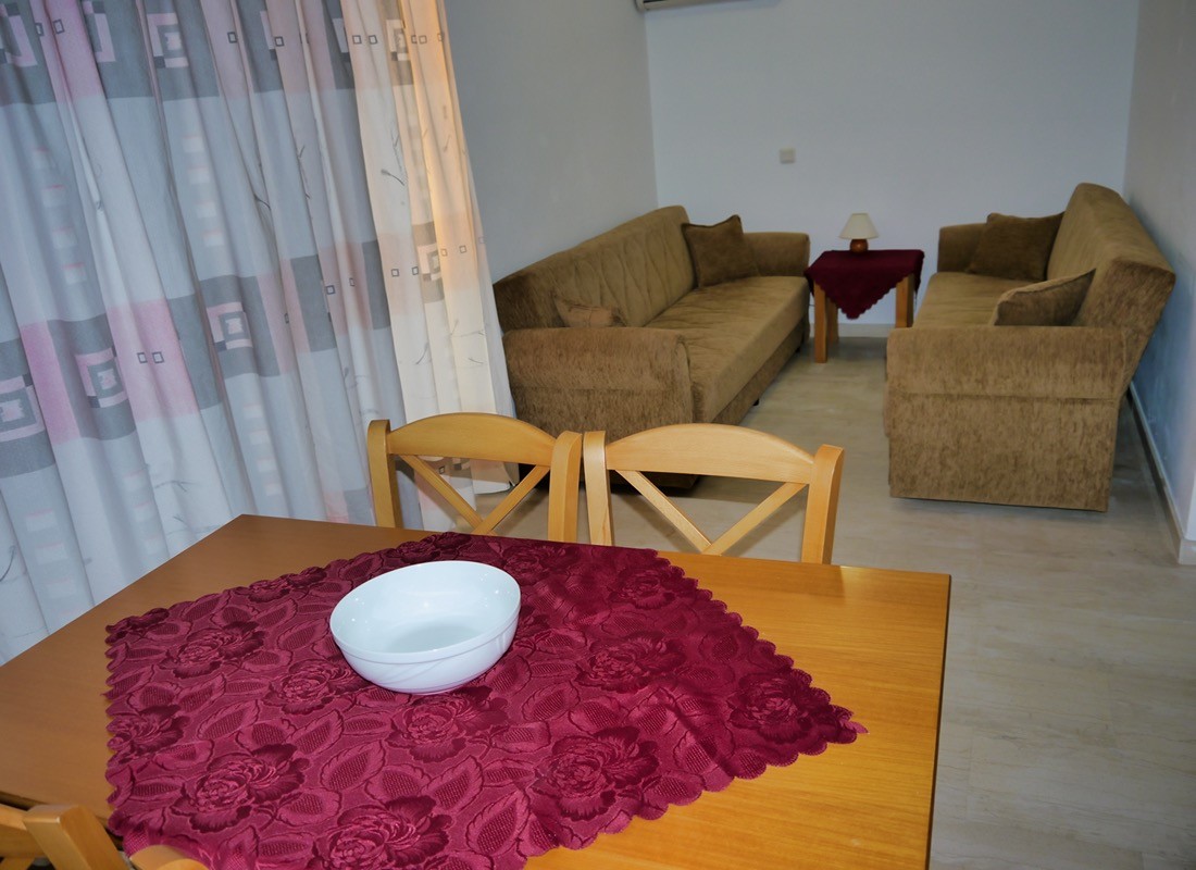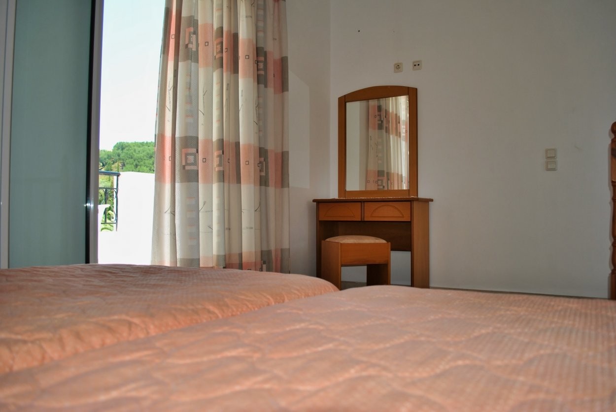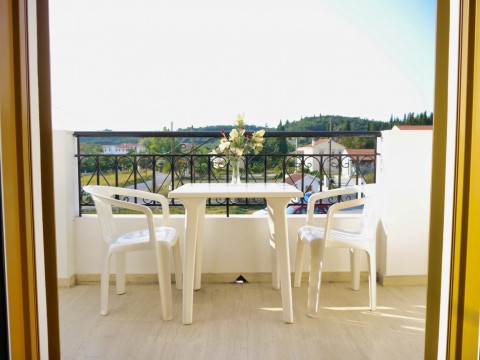 Our Upper Floor Two Bedroom Apartment is a spacious and modern living space located on the first floor of the second building. It offers beautiful views of the surrounding nature and olive trees and overlooks the resort's swimming pool.