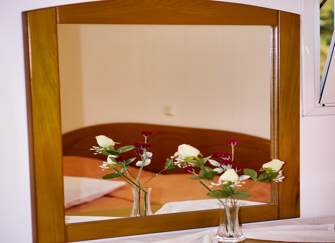 This two-floored family room can accommodate up to 5 people and is equipped with all the amenities you need for a comfortable stay. The room features a kitchen, a living room with sofa beds, and a dining area, so you can enjoy meals and relaxation in the comfort of your own space. The room is self-catering, so you'll have everything you need to prepare your own meals, including a refrigerator and microwave.
