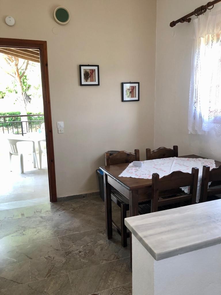 The apartments sleep 4-5 people and are surrounded by a luscious garden with trees, flowers and vegetables. Mrs Boula, your landlady comes by often to tend the garden and harvest and vegetables and fruit, and there will always be some tomatoes, peppers, eggplants, apricots or whatever the garden has to offer for you, freshly picked! An ideal way to start the day…!